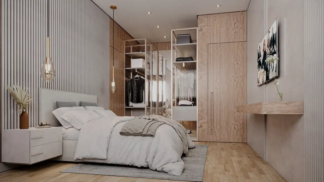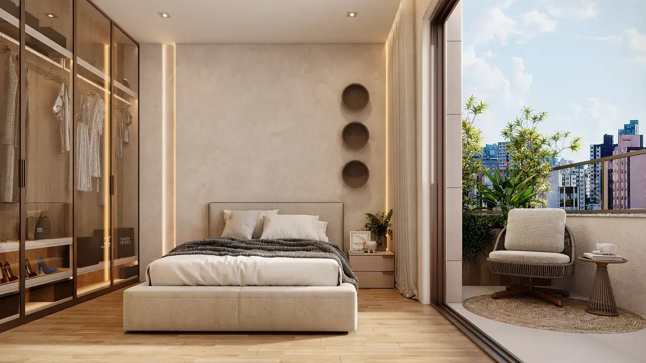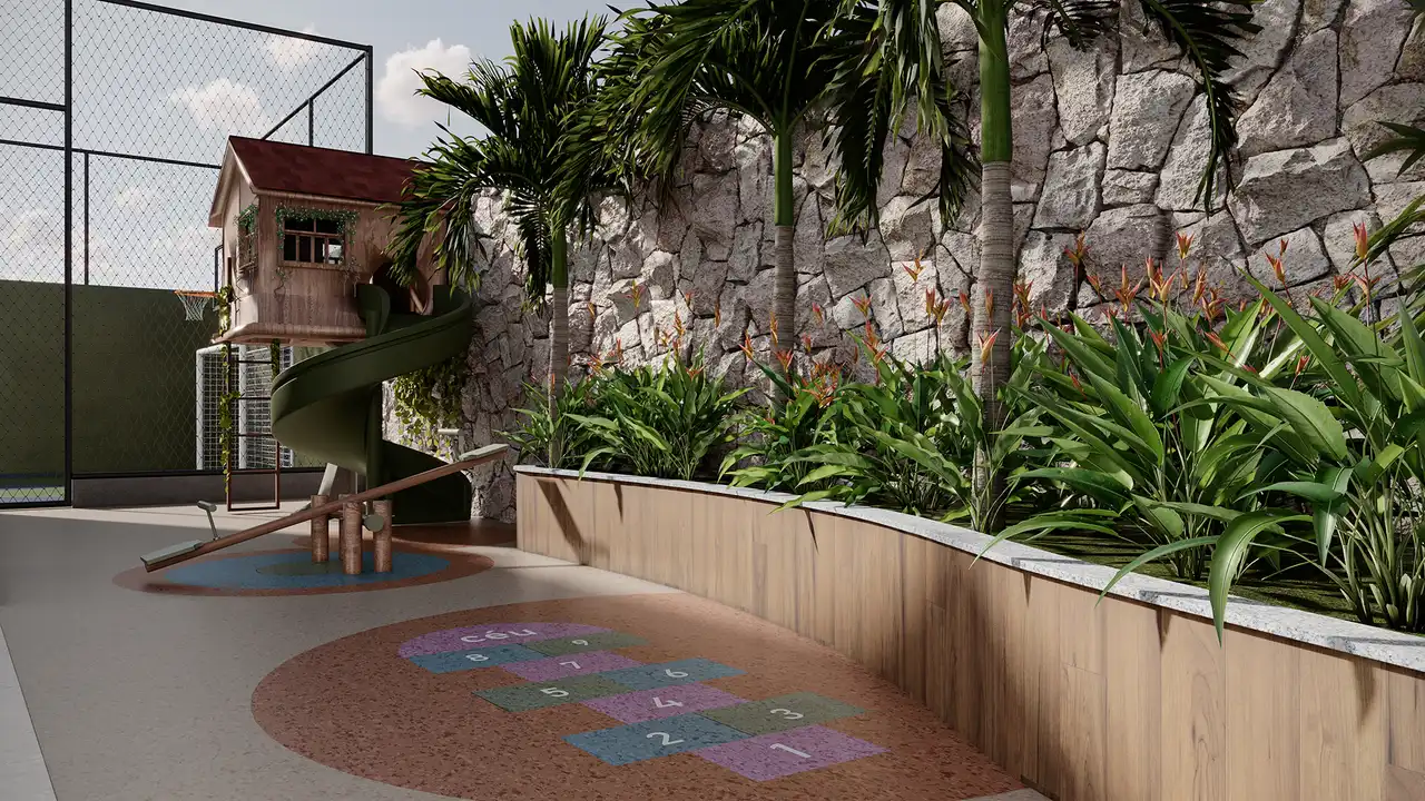 O imóvel tem 2 quartos, sendo 1 suíte, e 2 vagas de garagem.