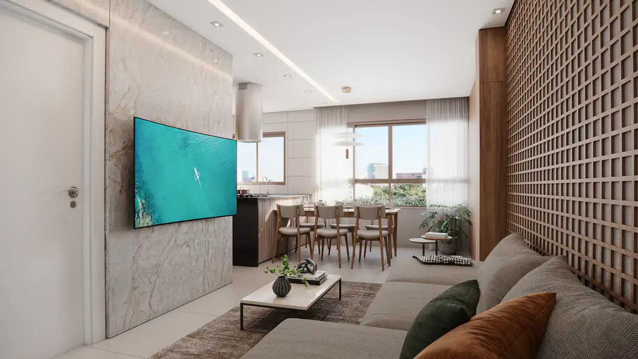 Área total de 72,58m² e 63,84m² de área útil.