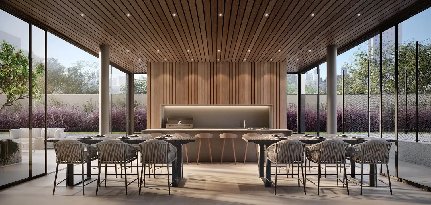 O imóvel tem 4 quartos, sendo 4 suítes, e 3 vagas de garagem.