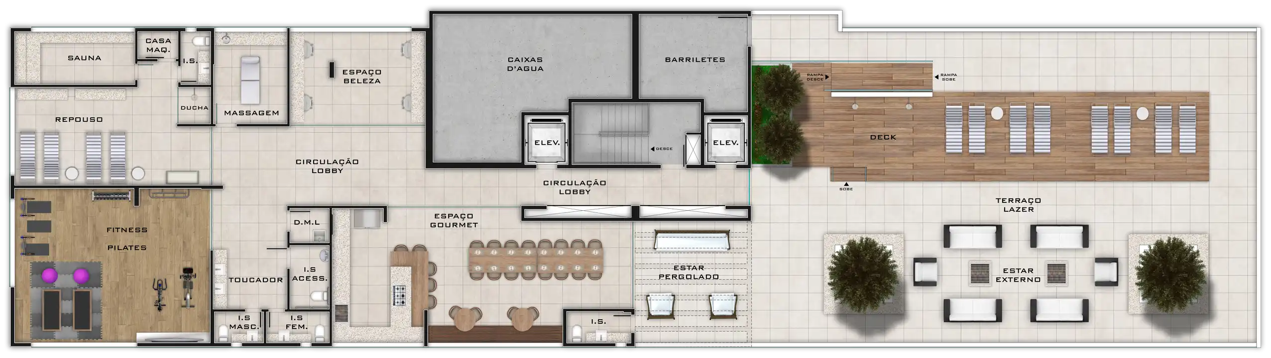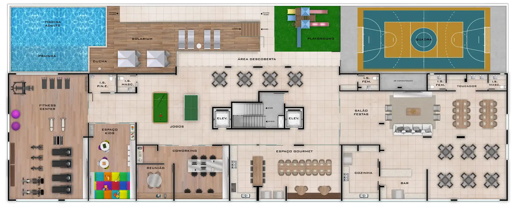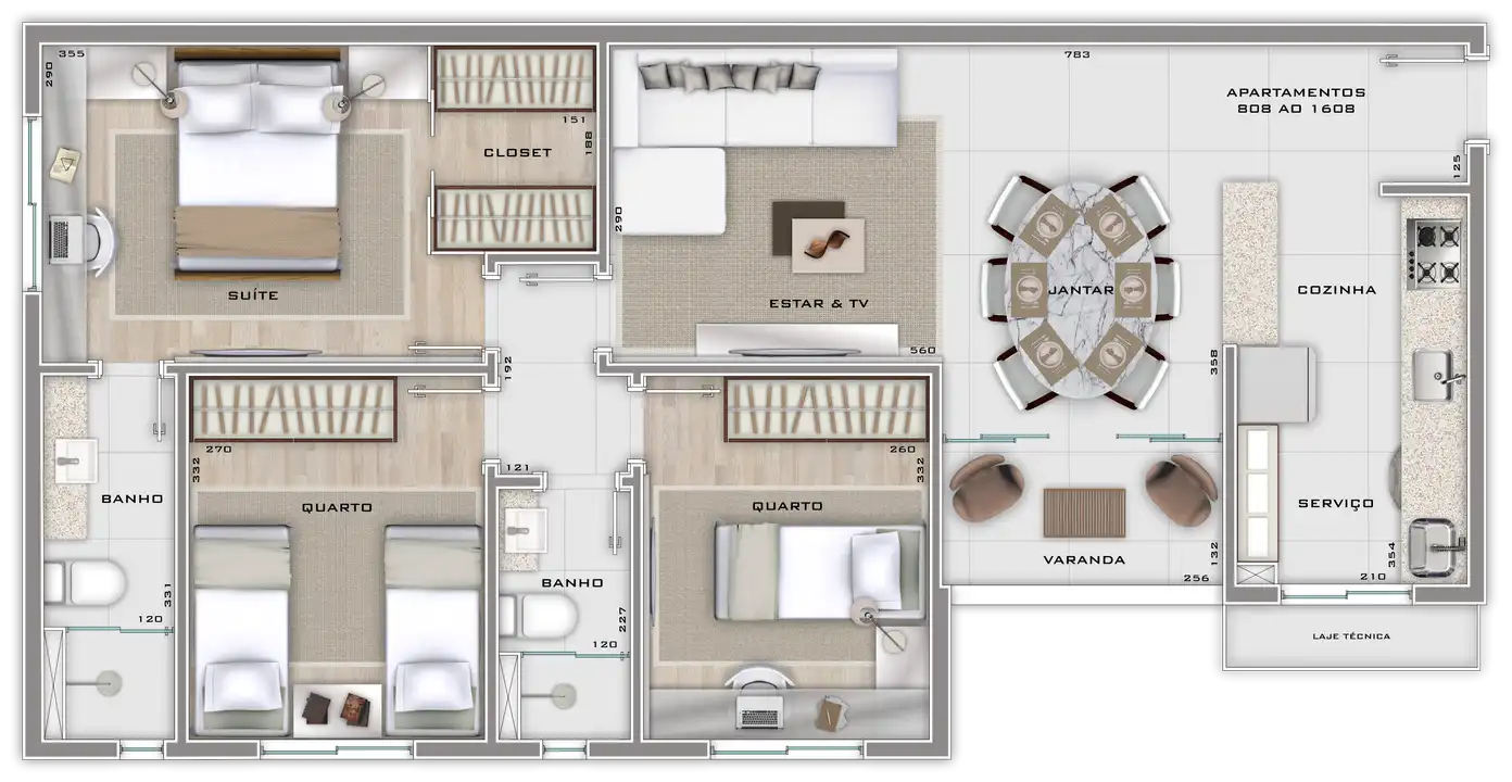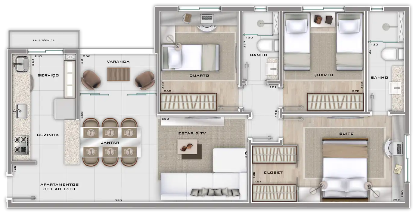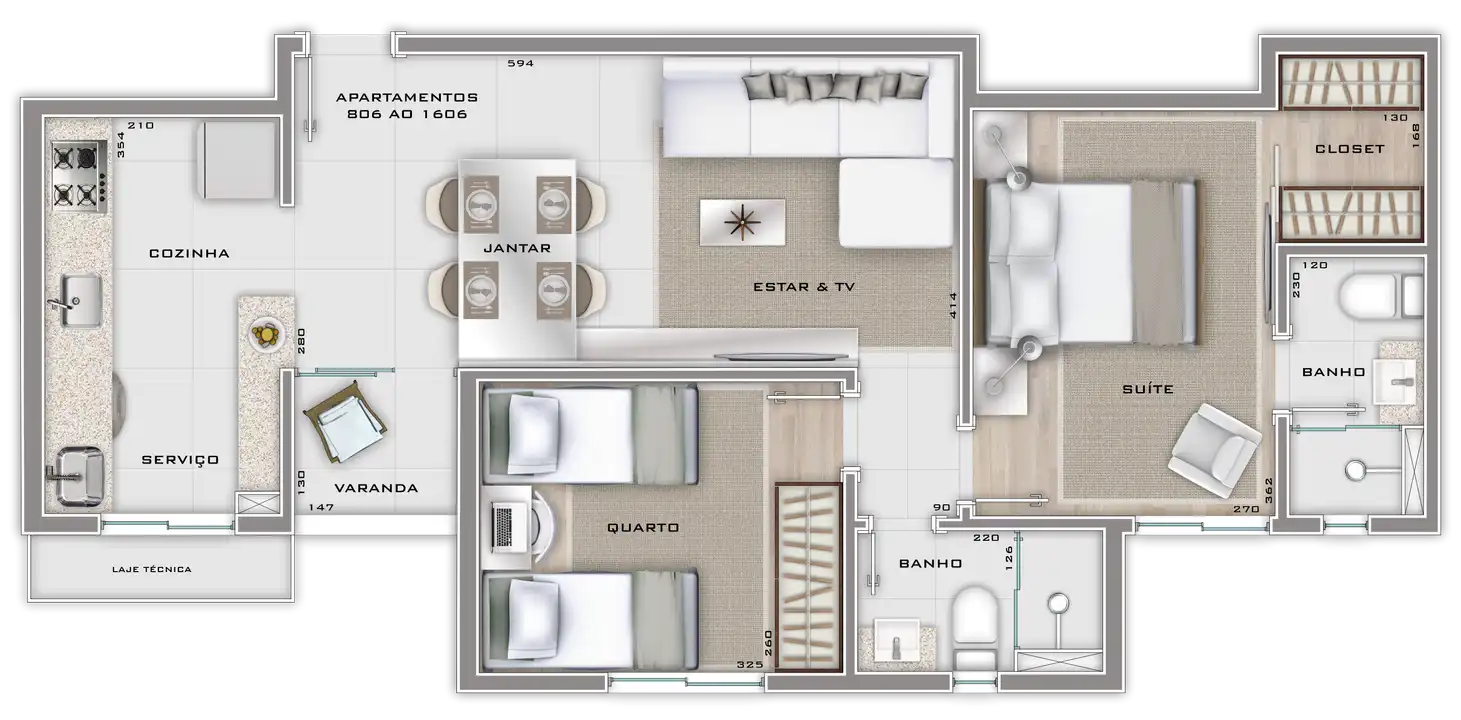 Área total de 67,23m² e 61,55m² de área útil.
