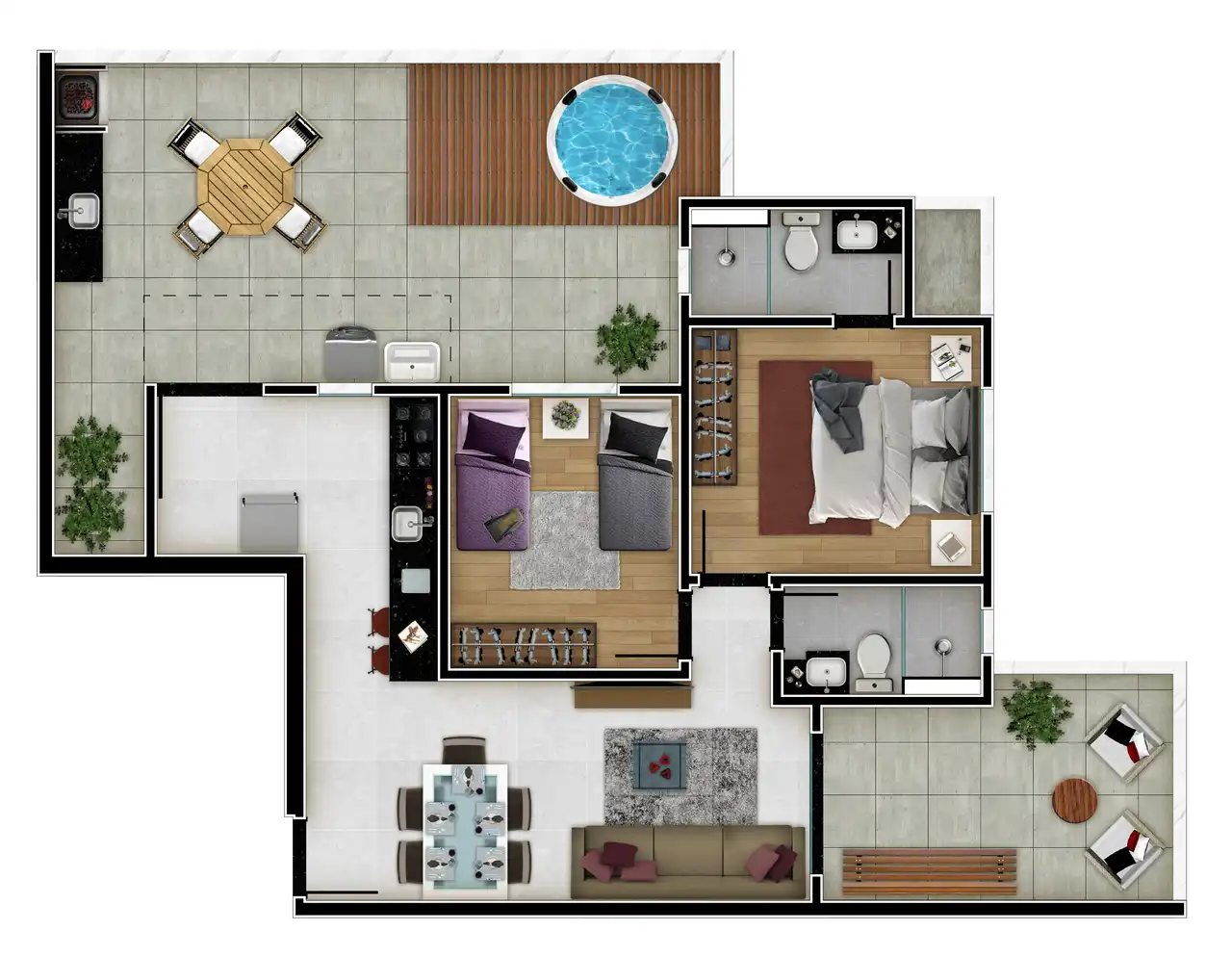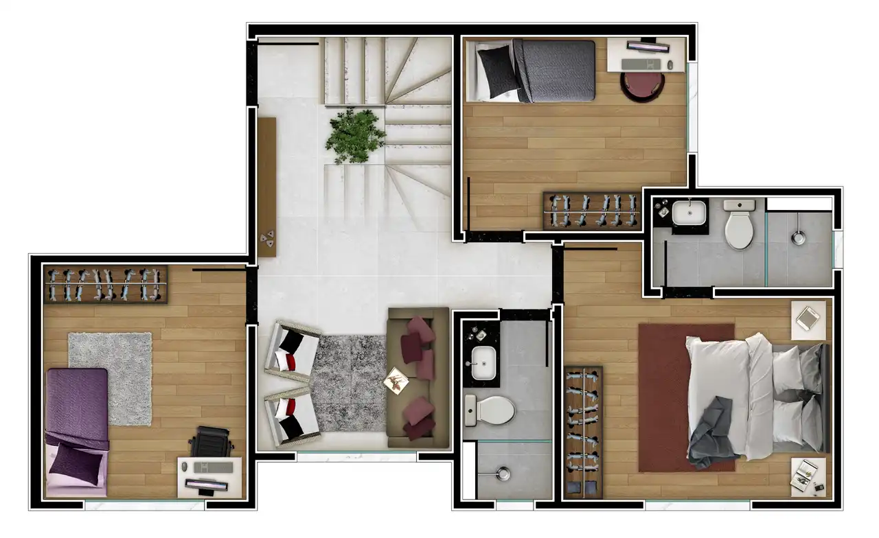 O imóvel tem 3 quartos, sendo 1 suíte, e 2 vagas de garagem.
